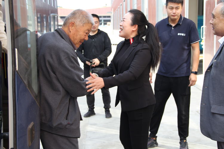 公司黨支部書記、副董事長梁娜親自到車門前攙扶老領導們平穩(wěn)下車。